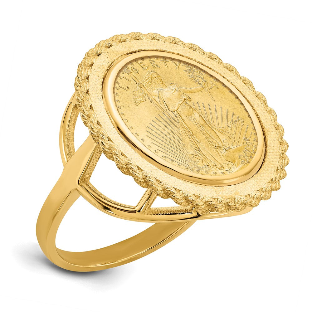 14k Yellow Gold 1/10AE Coin Ring with Coin, Size 7