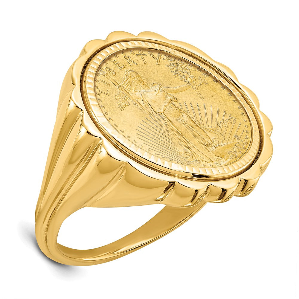 14k Yellow Gold 1/10AE Diamond Cut Coin Ring with Coin, Size 7
