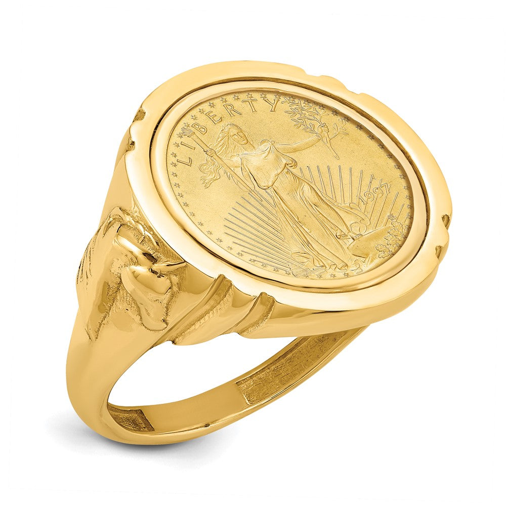 Men's 14k Yellow Gold 1/10AE Coin Ring with Coin, Size 10
