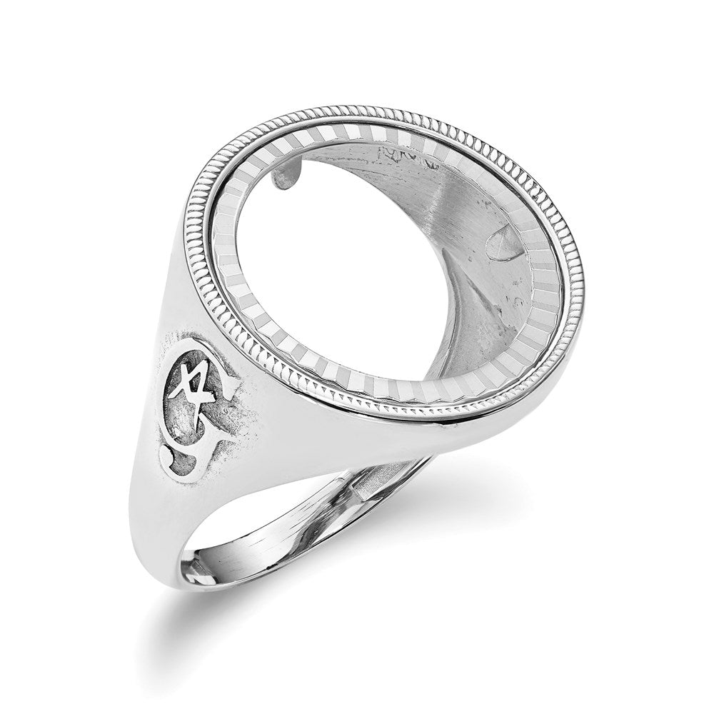 Men's 14k White Gold 1/10AE Diamond Cut Coin Ring, Size 10