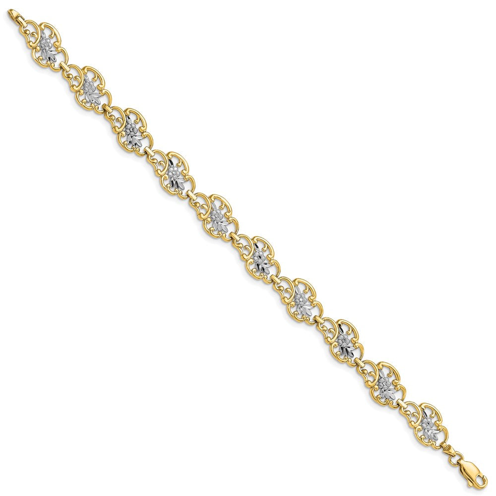 14k Two Tone Gold Diamond Cut Leaves and Flowers Link Bracelet, 7.25"
