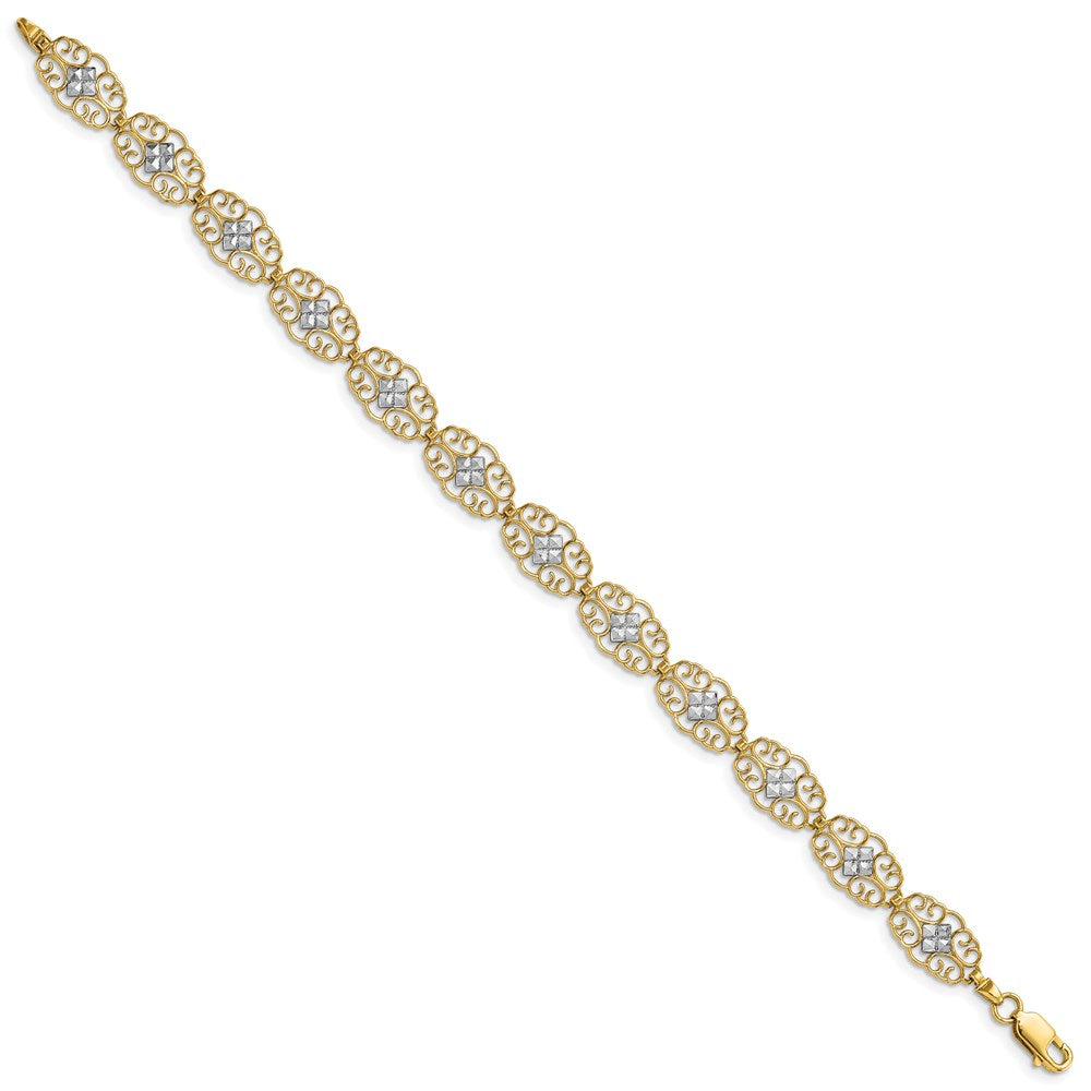 14k Two Tone Gold with Rhodium Plated Diamond Cut Marquise Shape with Scalloped Edge Bracelet, 7.25"