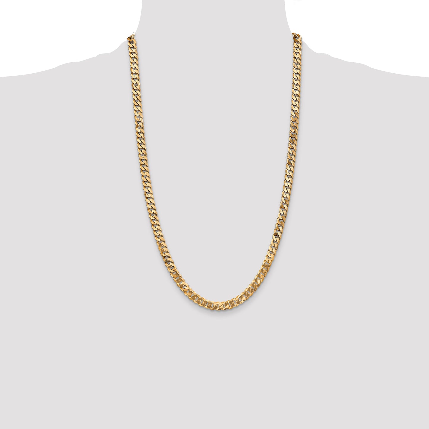 Men's 14k Yellow Gold 6.25mm Beveled Curb Chain Necklace, 26"