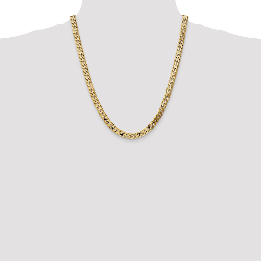 Men's 14k Yellow Gold 7.25mm Beveled Curb Chain Necklace, 22"