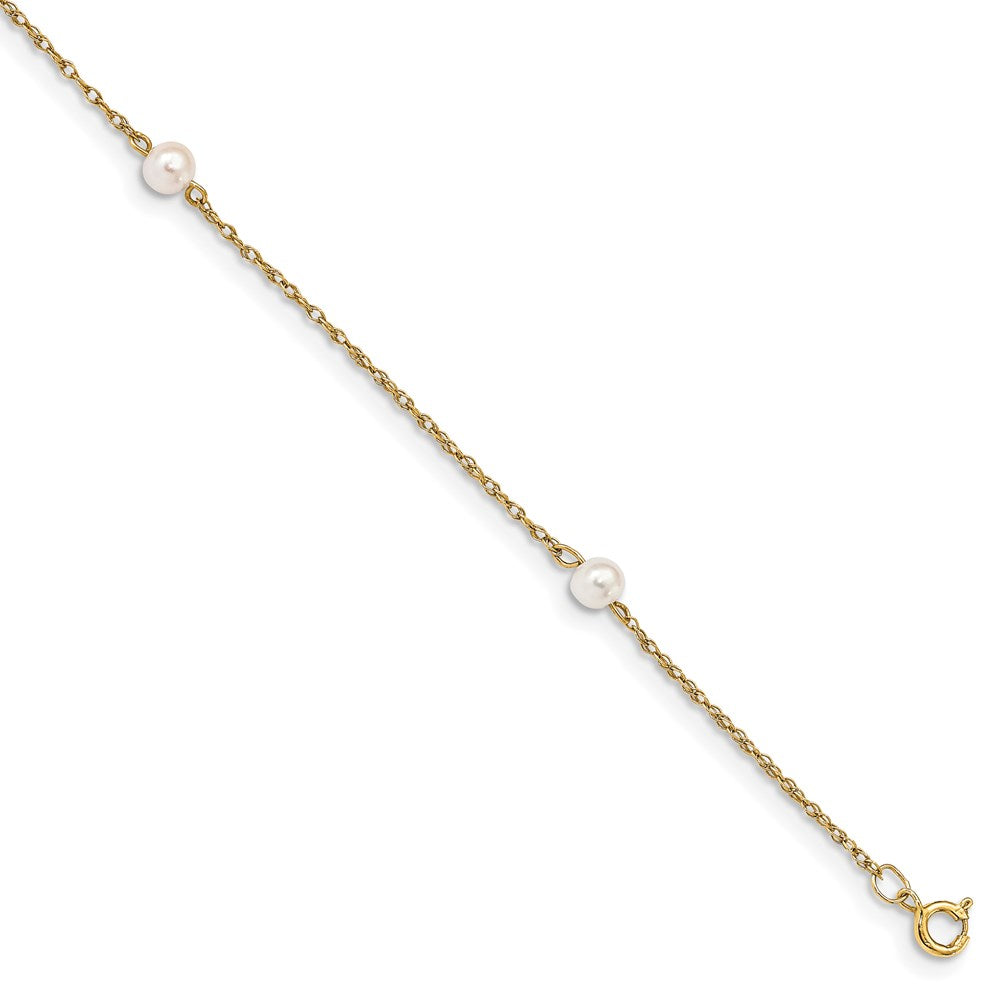 14k Yellow Gold White Round Shape Freshwater Cultured Pearl 3-Station Bracelet (5-6mm), 6"