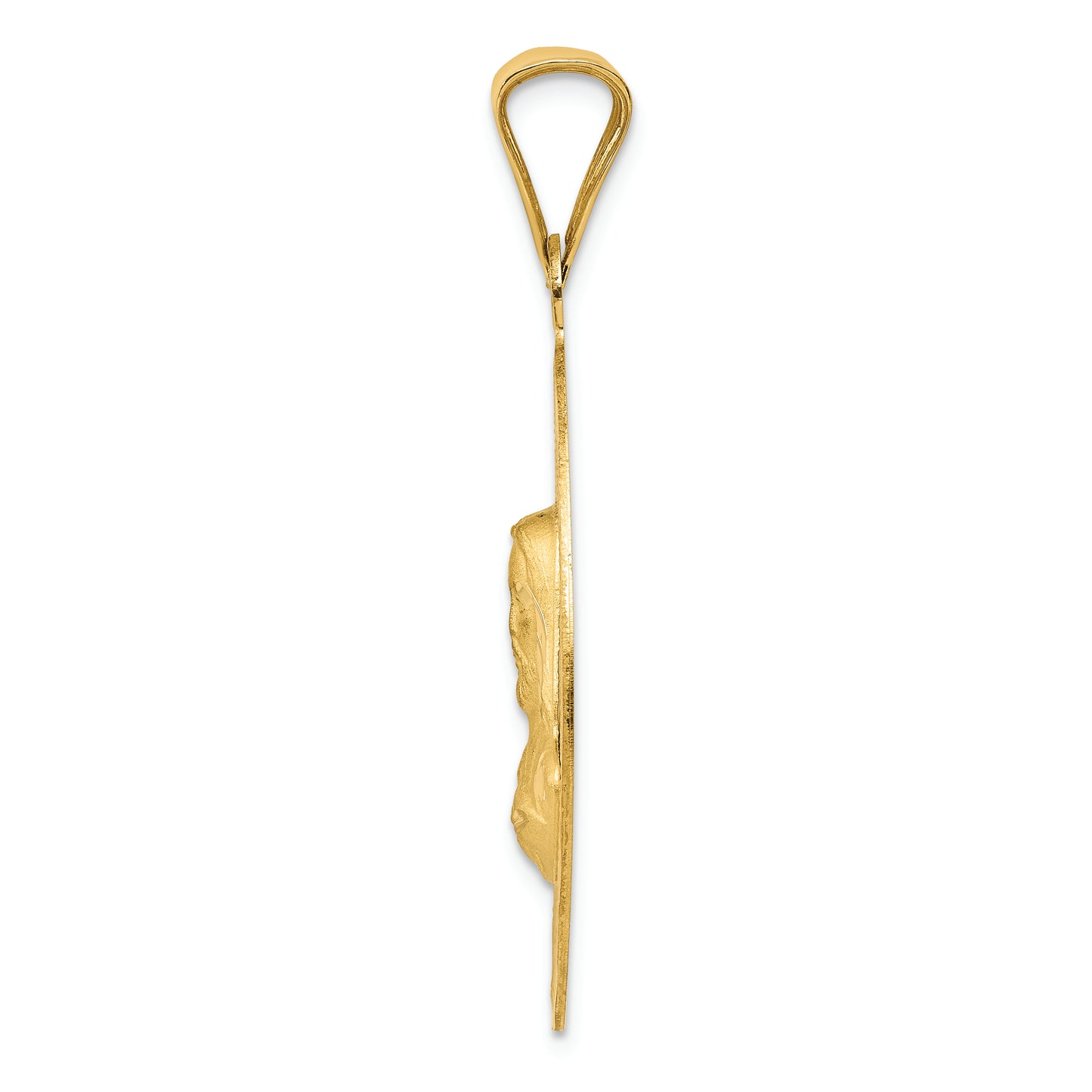 14k Yellow Gold and Rhodium Plated and Diamond Cut Sagrado Corazon Oval Shape Pendant