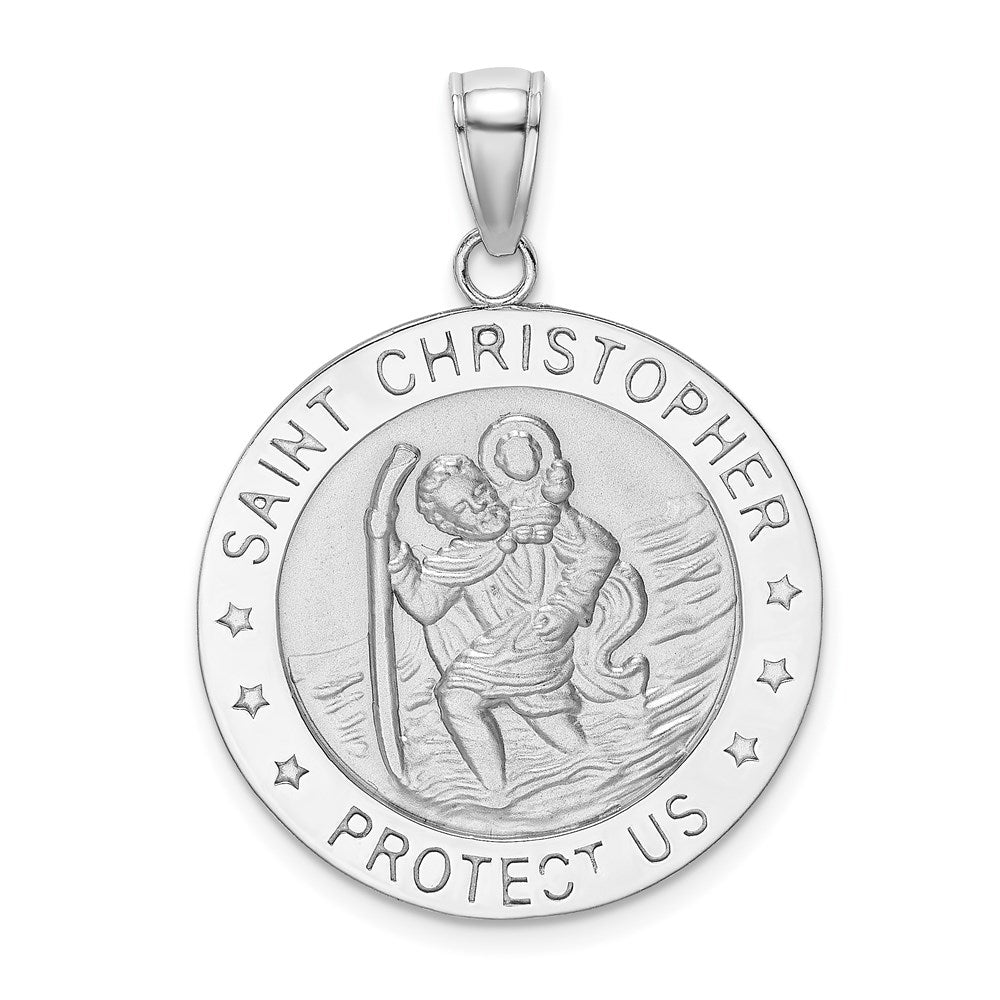 14k White Gold and Satin Christopher Medal Charm Pendant