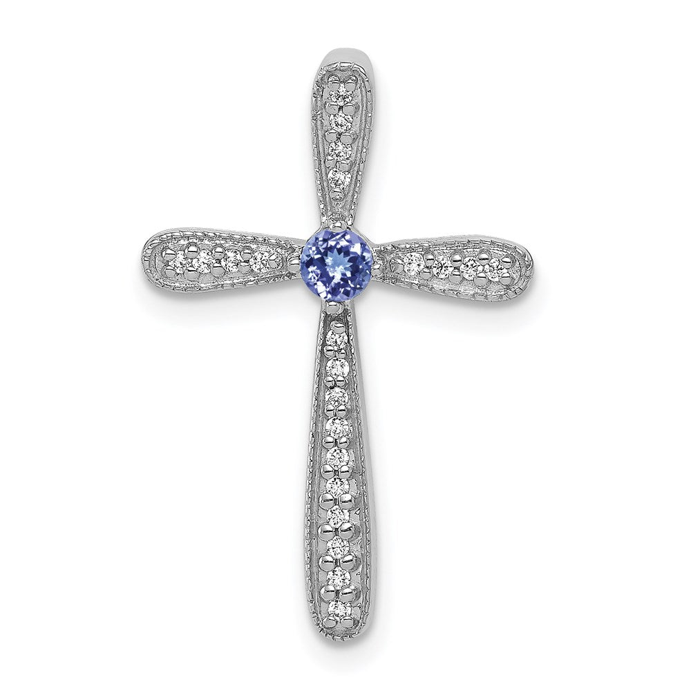 14k White Gold Diamond and Tanzanite Cross Pendant