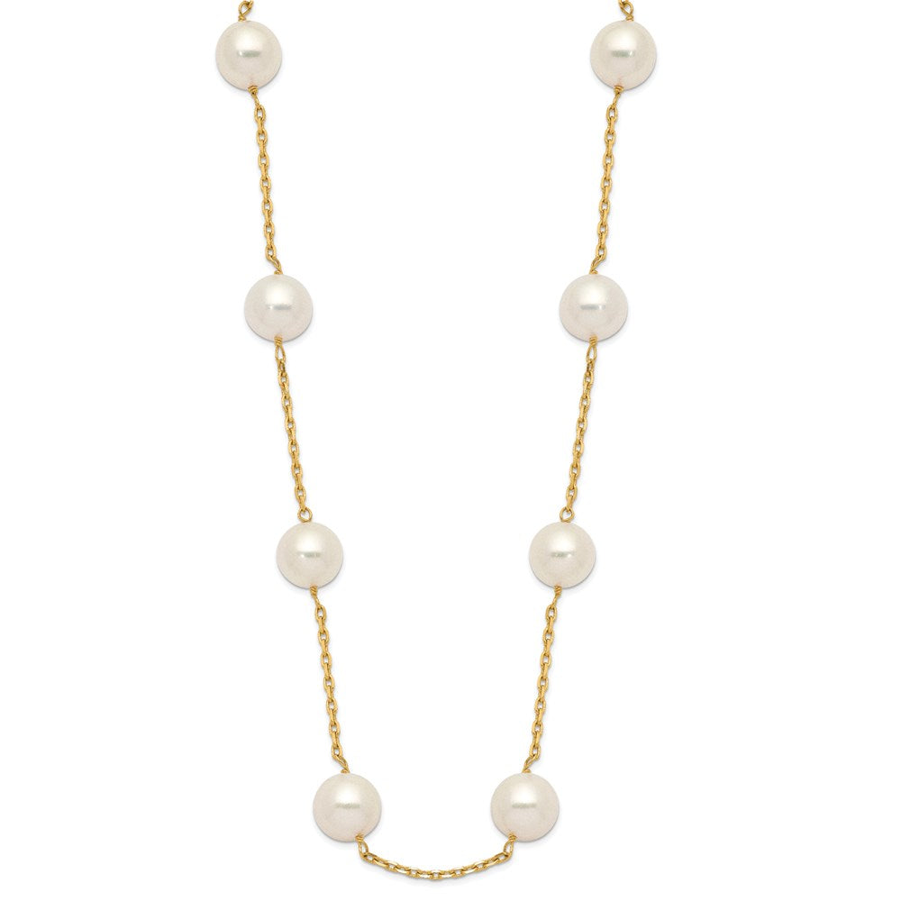 14k Yellow Gold White Round Shape Freshwater Cultured Pearl 14-Station Necklace (8-9mm), 18"
