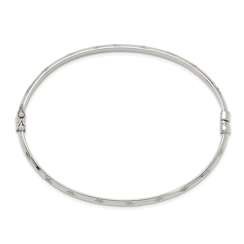 925 Sterling Silver Diamond Cut Bangle Bracelet 4mm and Hoop 3mm Earrings Set