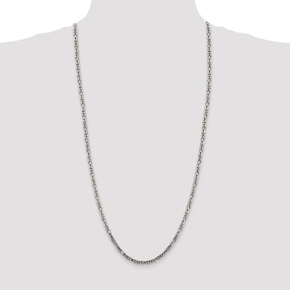 925 Sterling Silver 3.25mm Byzantine Chain Necklace, 30"