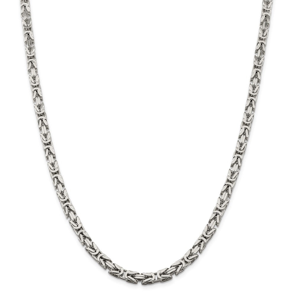 925 Sterling Silver 5mm Square Shape Byzantine Chain Necklace, 20"