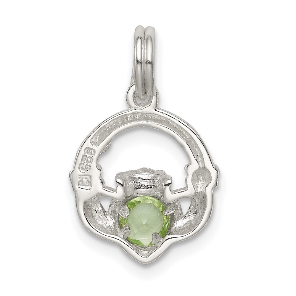 925 Sterling Silver Claddagh with Green Cubic Zirconia Charm Pendant