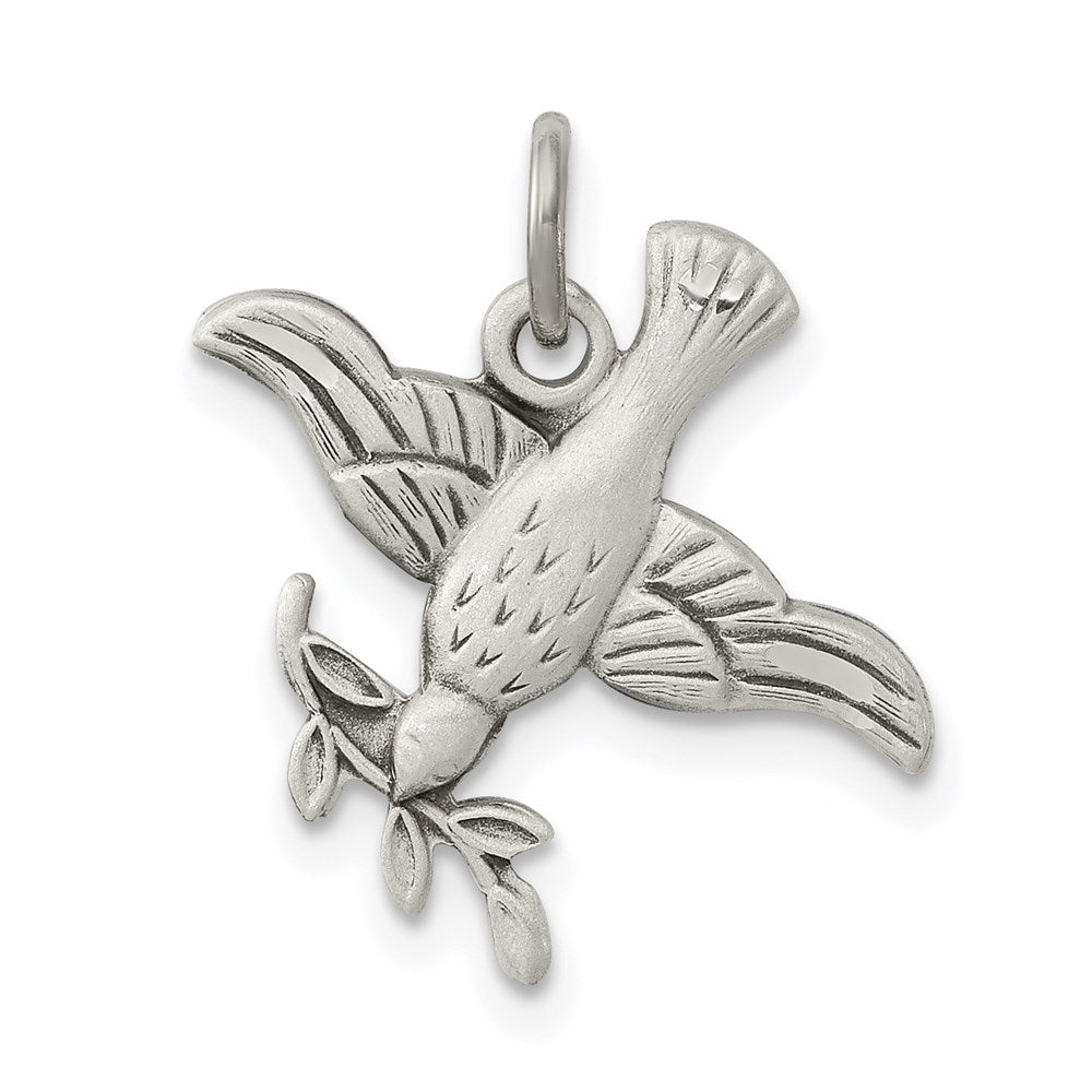 925 Sterling Silver Antiqued Dove Medal Pendant