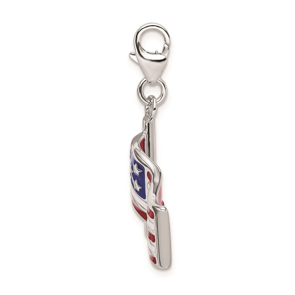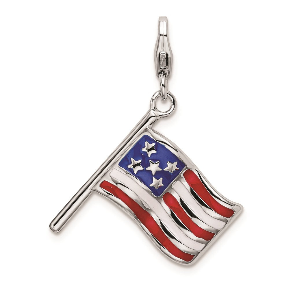 925 Sterling Silver 3-D Enameled American Flag with Lobster Clasp Charm Pendant