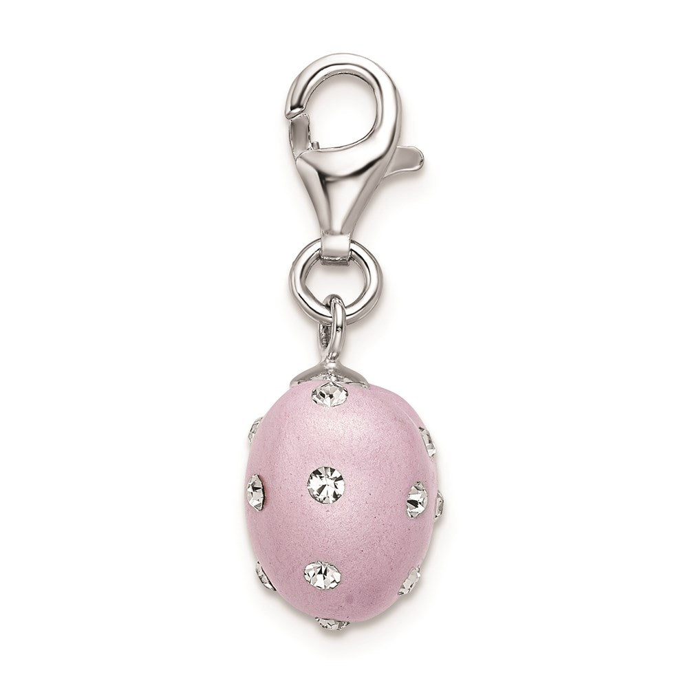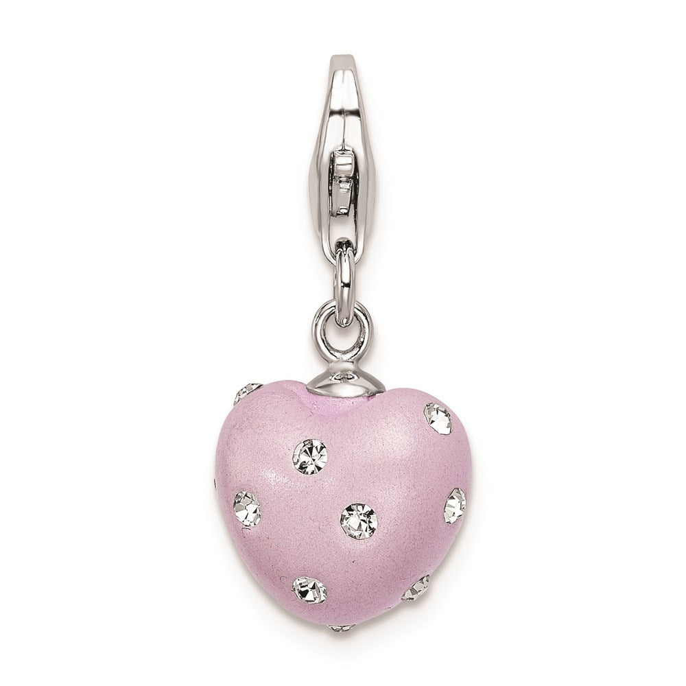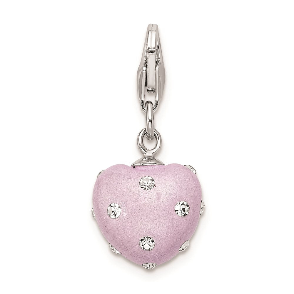 925 Sterling Silver Click-on Purple Ferido and Stellux Crystal Heart Charm Pendant