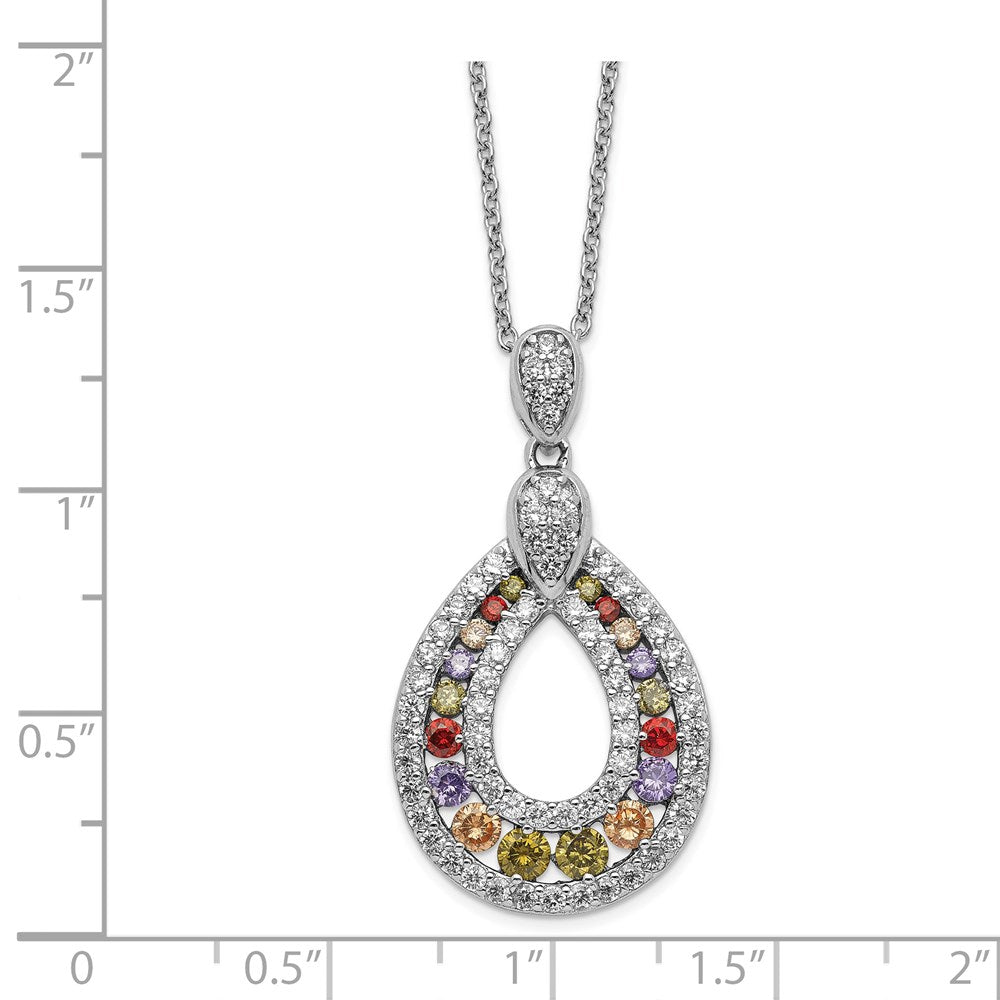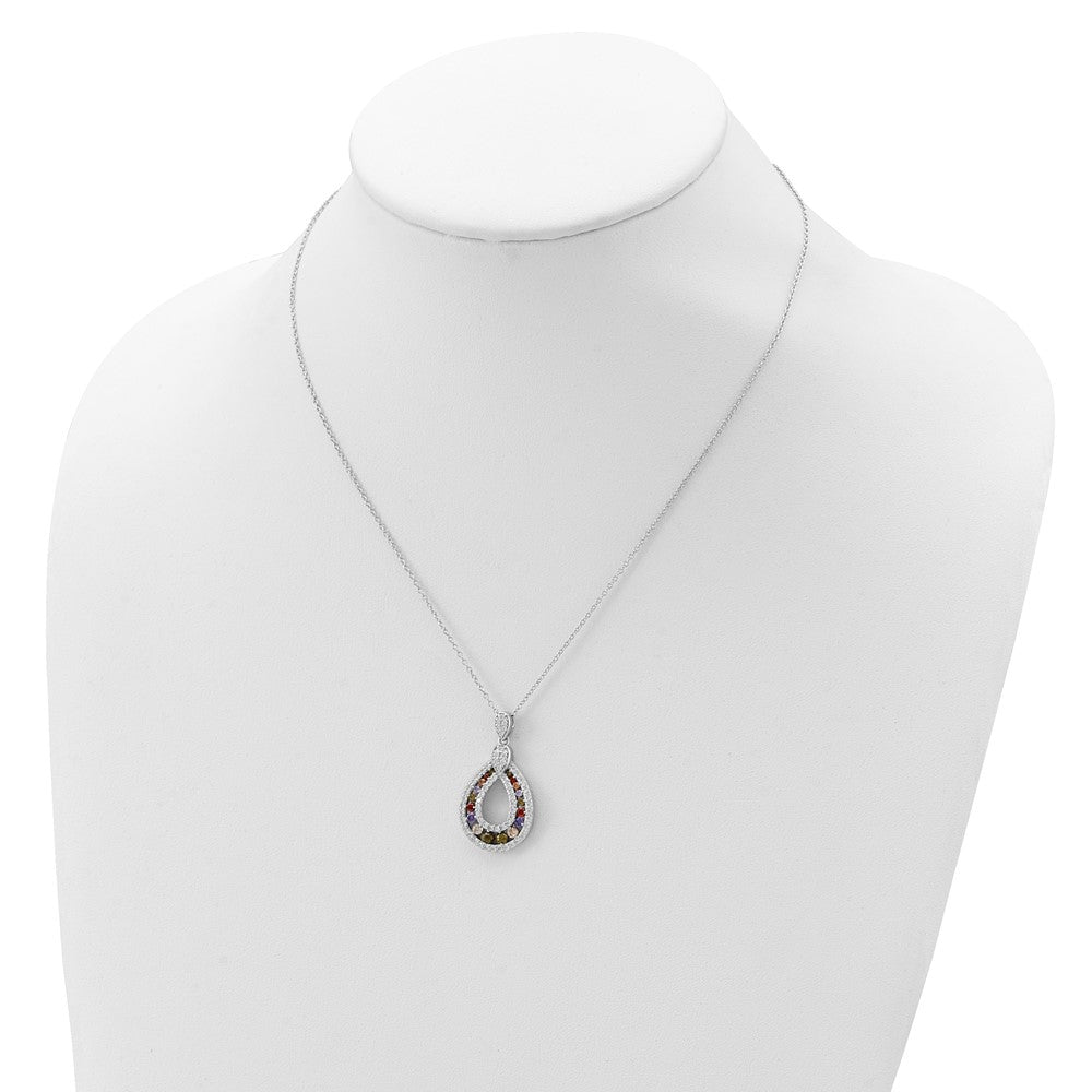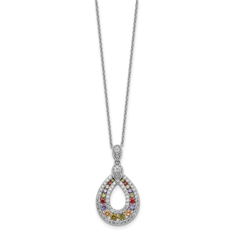 925 Sterling Silver Multi-Color Cubic Zirconia Teardrop Necklace, 18"