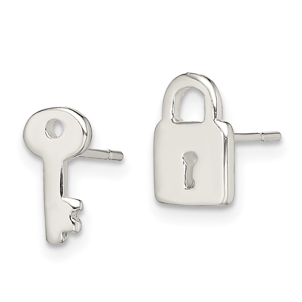 925 Sterling Silver Left and Right Lock/Key Post Earrings