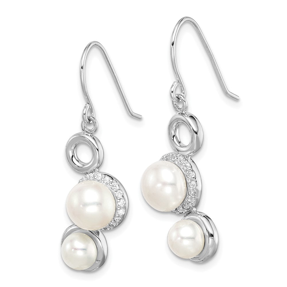 925 Sterling Silver White Button Freshwater Cultured Pearl Cubic Zirconia Earrings (5-8mm)