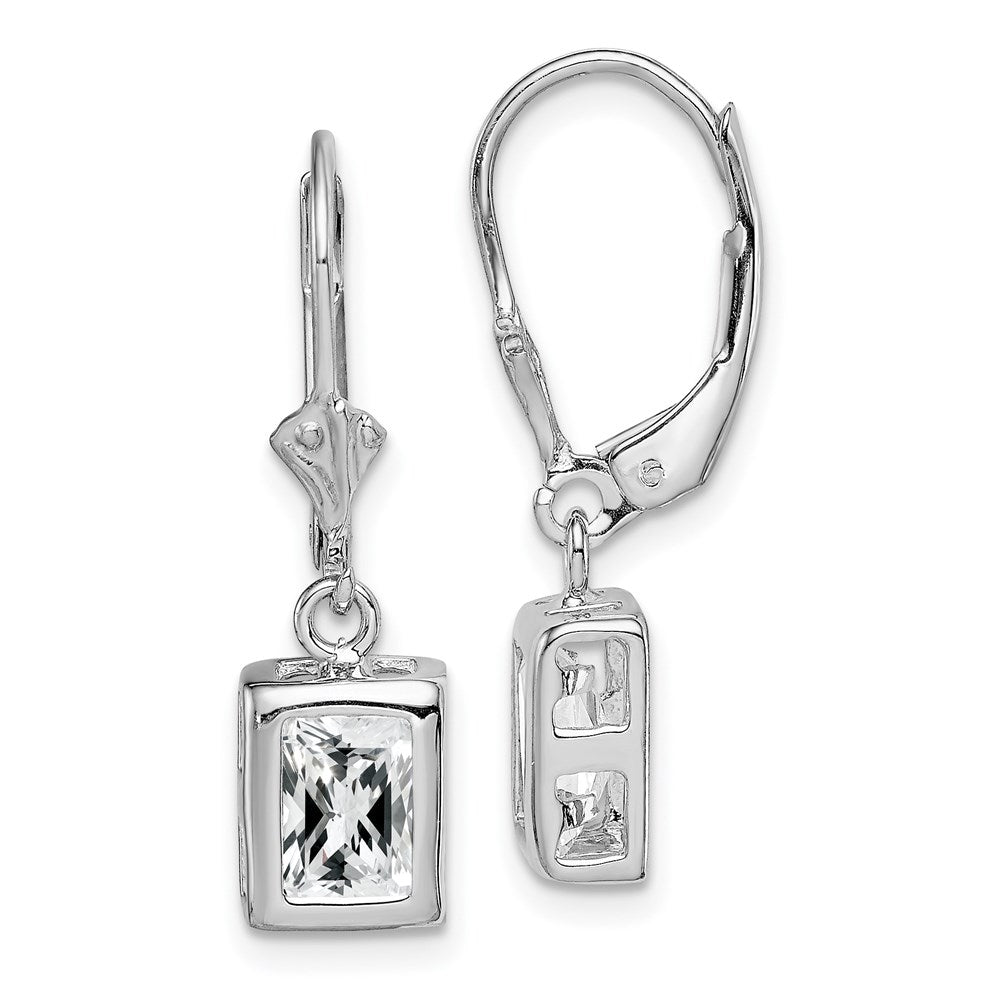 925 Sterling Silver 7x5 Emerald Cut Cubic Zirconia Leverback Earrings