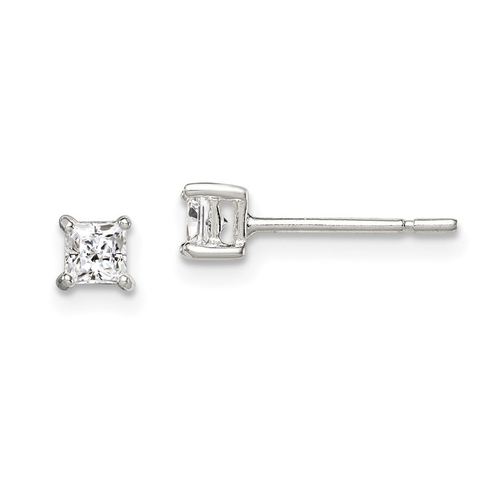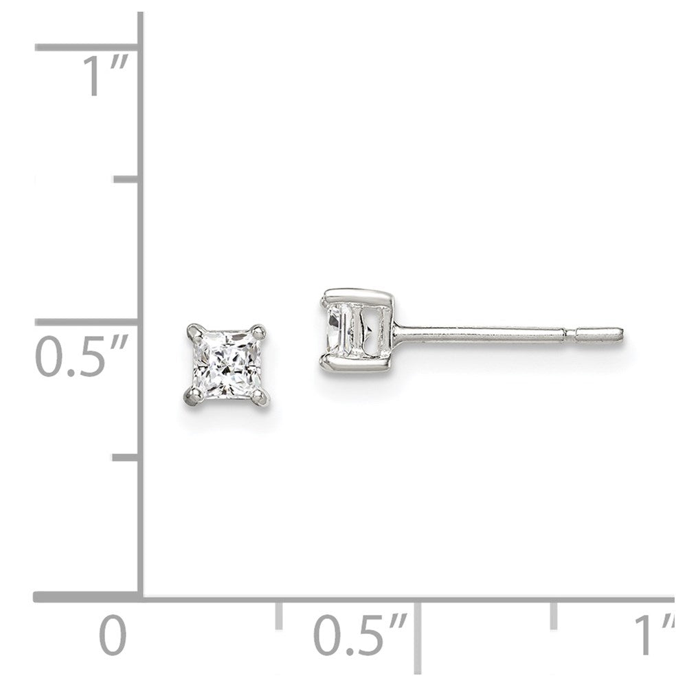 925 Sterling Silver 3mm Princess Basket Set Cubic Zirconia Stud Earrings