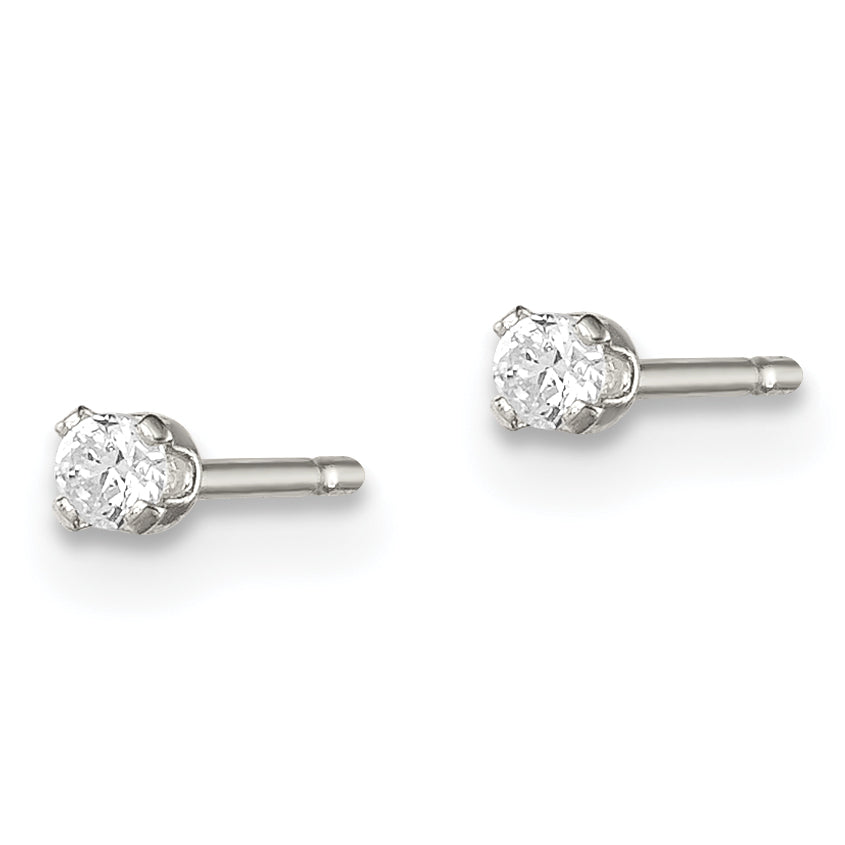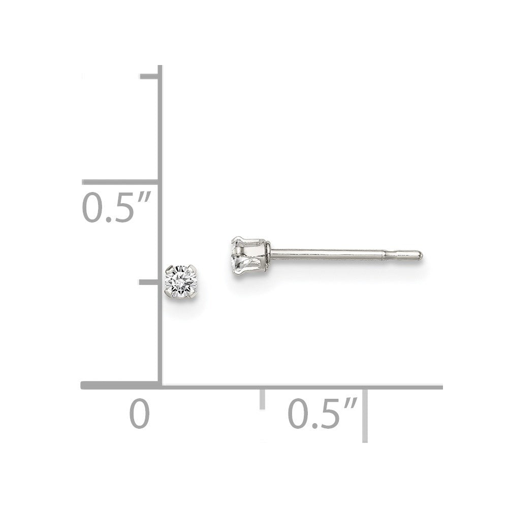 925 Sterling Silver 2mm Round Shape Snap Set Cubic Zirconia Stud Earrings