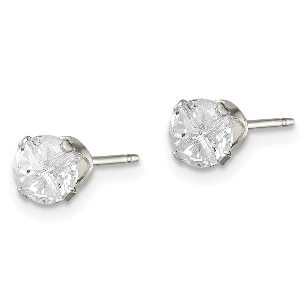 925 Sterling Silver 4.5mm Round Shape Snap Set Cubic Zirconia Stud Earrings