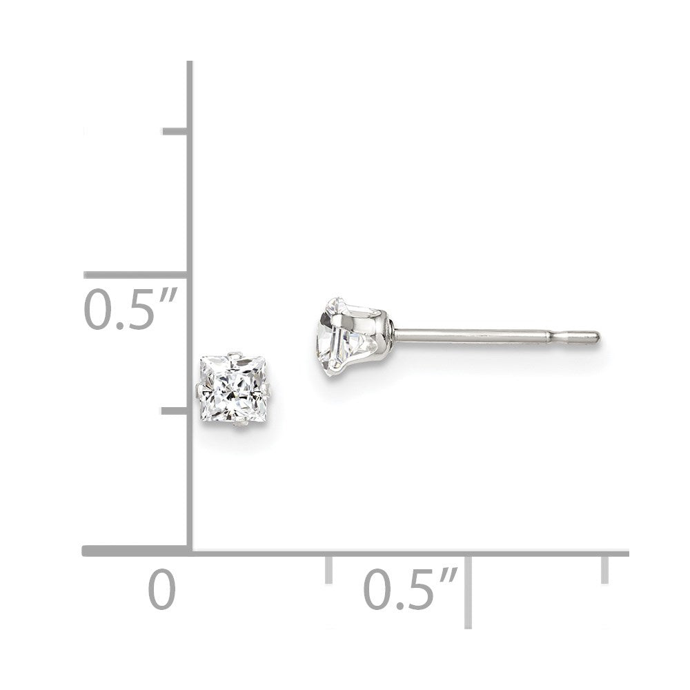 925 Sterling Silver 3mm Square Shape Snap Set Cubic Zirconia Stud Earrings