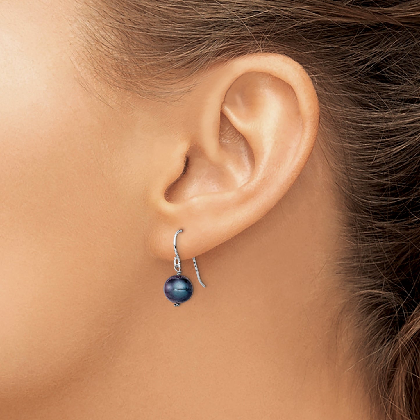 925 Sterling Silver Black Freshwater Cultured Pearl Dangle Earrings (7.5-8mm)