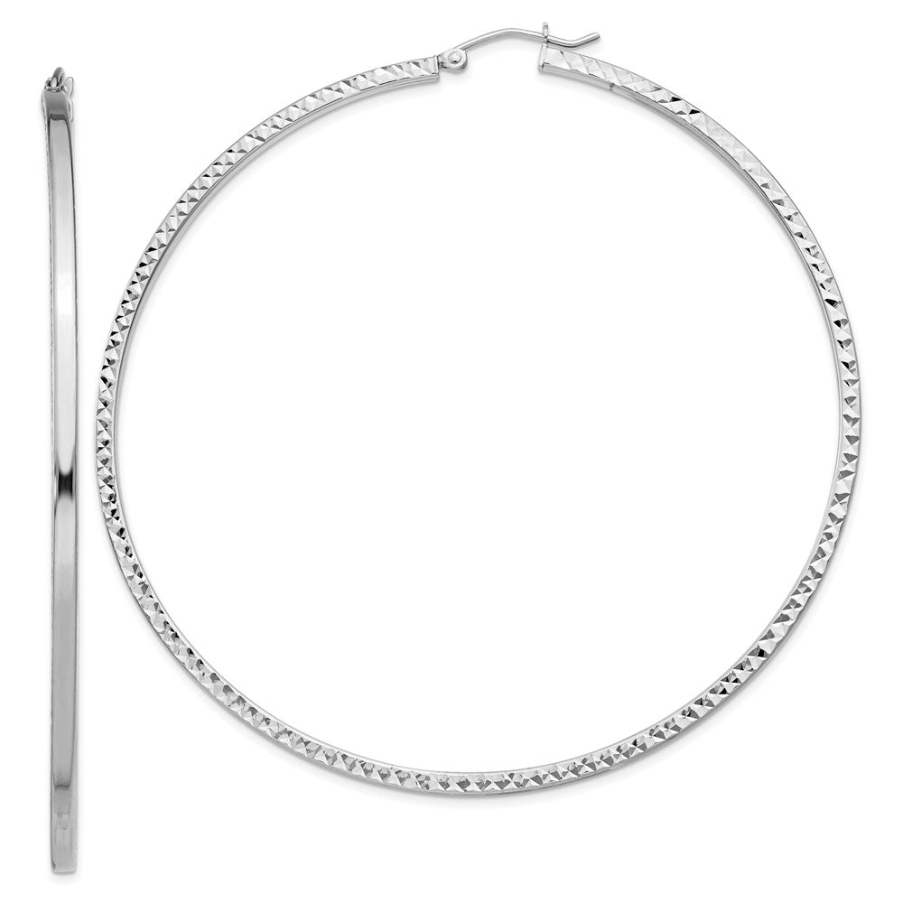 925 Sterling Silver Diamond Cut Square Shape Tube Hoop Earrings (2x7mm)