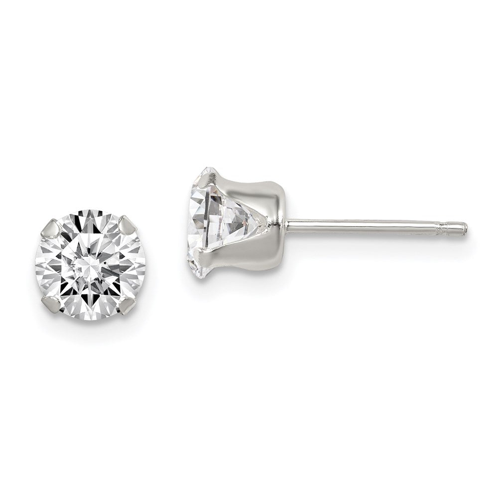 925 Sterling Silver Cubic Zirconia 6mm Post Earrings