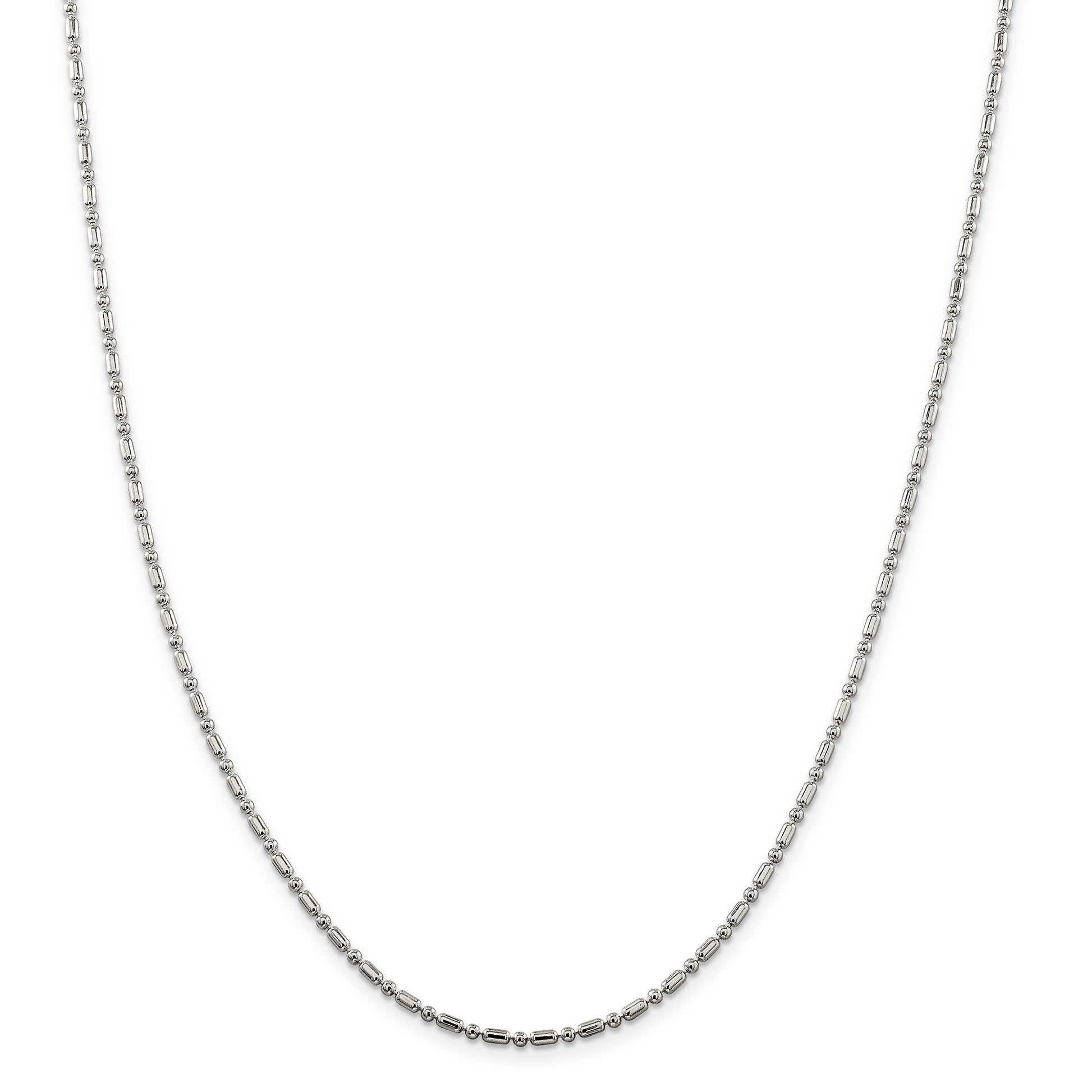 925 Sterling Silver 2mm Fancy Beaded Chain Necklace, 18"