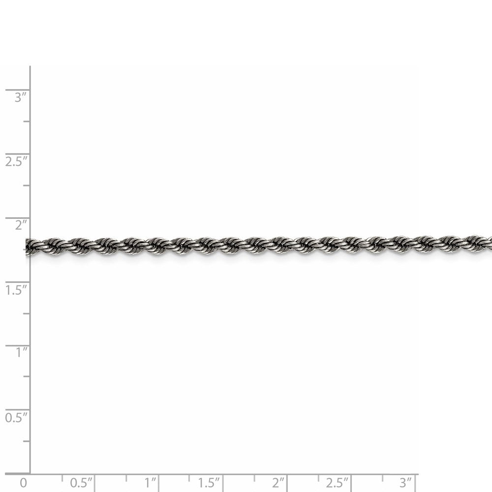 Men's 925 Sterling Silver Ruthenium 3mm Rope Chain Necklace, 30"