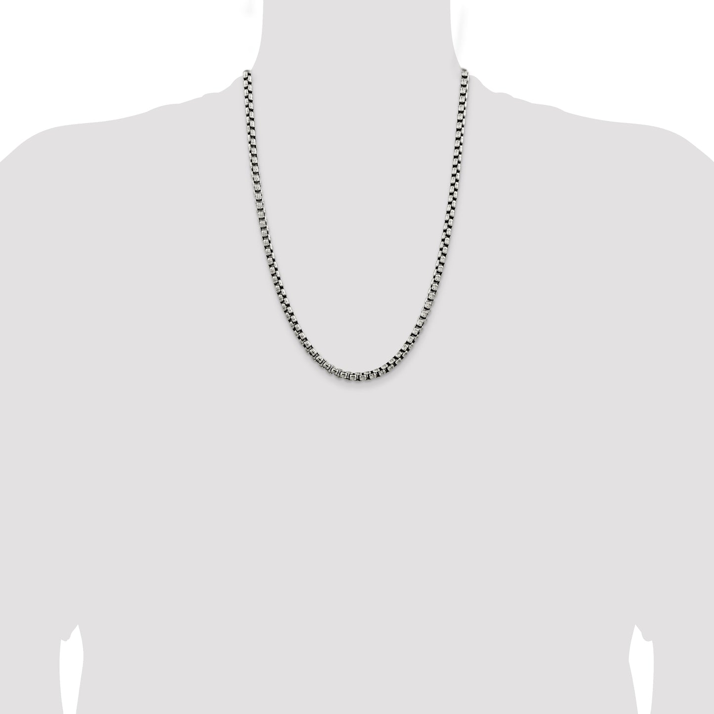 925 Sterling Silver 5.2mm Antiqued Round Shape Box Chain Necklace, 24"