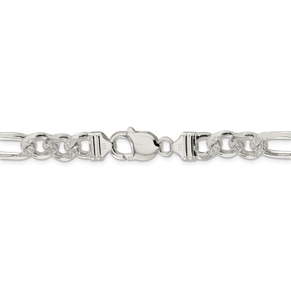 Men's 925 Sterling Silver 9.5mm Pave Flat Figaro Chain Necklace, 24"