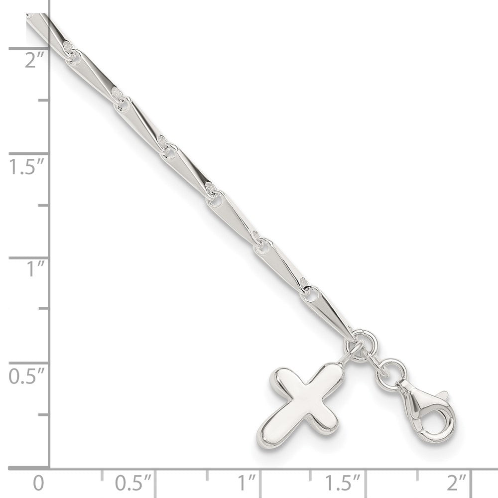 925 Sterling Silver 9 Solid Cross on Fancy Link Anklet Chain, 9"