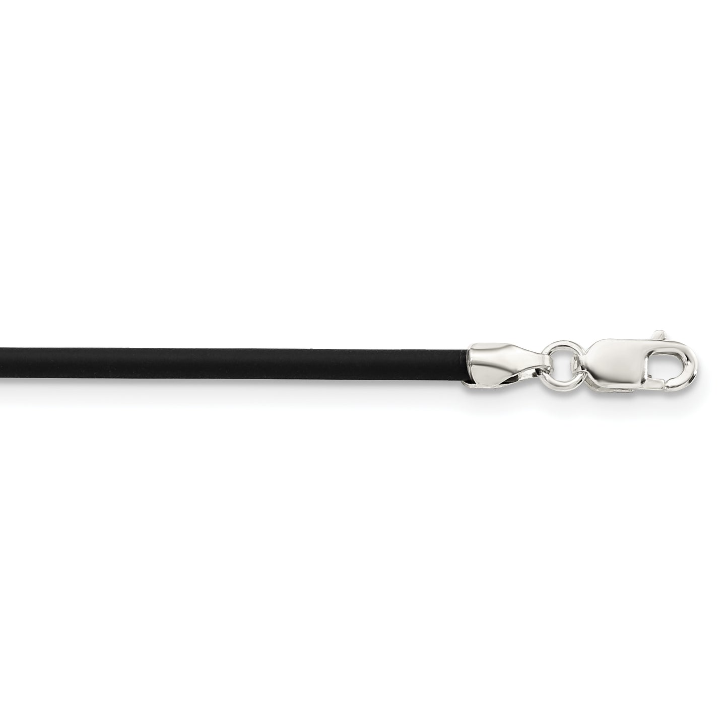 925 Sterling Silver 2mm Black Rubber Cord Necklace, 18"