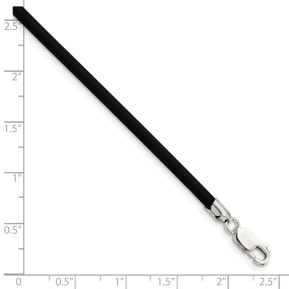 925 Sterling Silver 3mm Black Rubber Cord Necklace, 20"