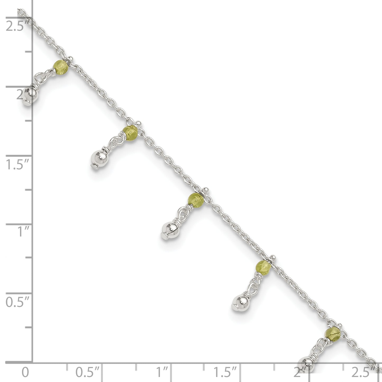 925 Sterling Silver Peridot Bead Ankle Anklet Chain, 9"