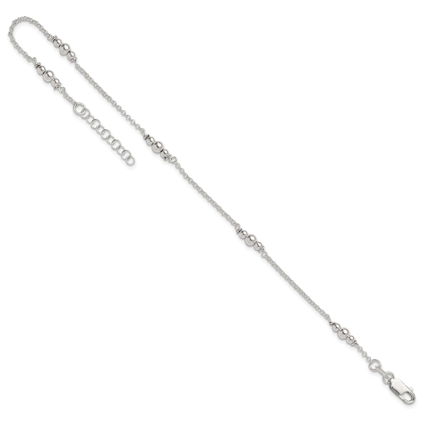 925 Sterling Silver Bead Anklet Chain, 9" +1" Extender