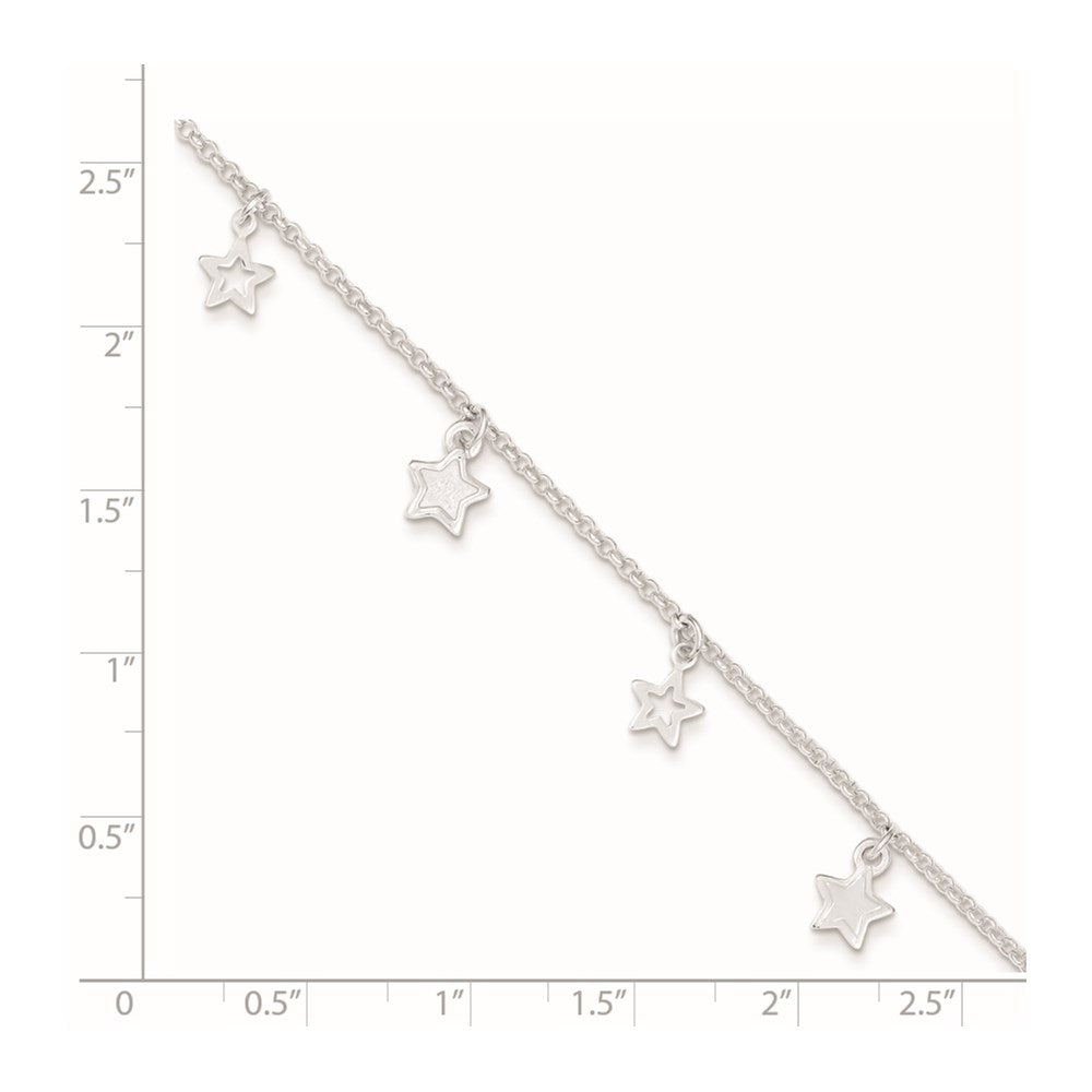 925 Sterling Silver and Textured Star Anklet Chain, 9" +1" Extender