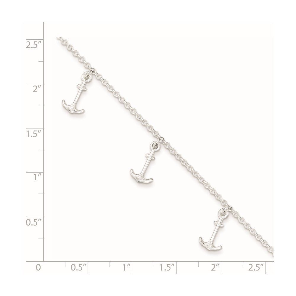 925 Sterling Silver Anchors Anklet Chain, 9" +1" Extender