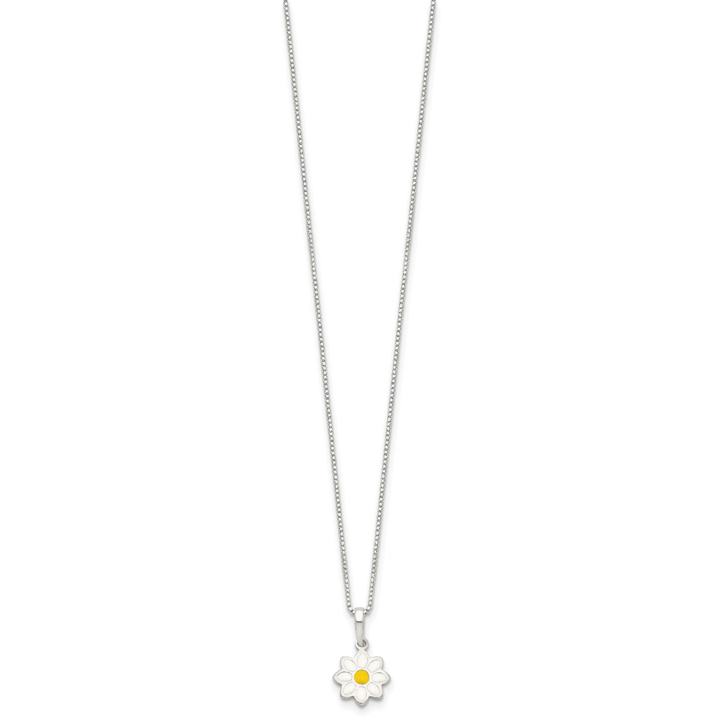 925 Sterling Silver Enamel Flower Necklace, 15"