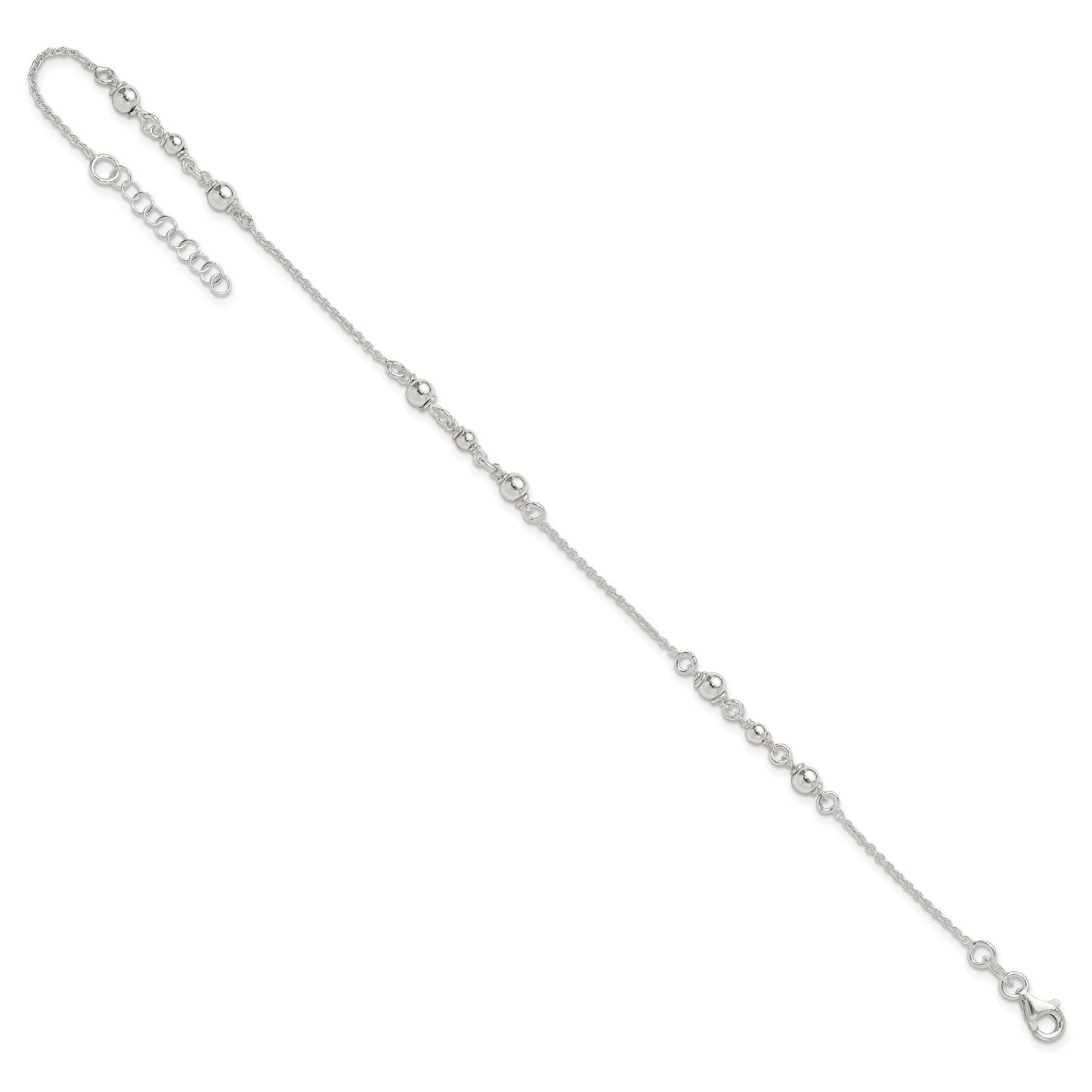 925 Sterling Silver Fancy Anklet Chain, 9" +1" Extender