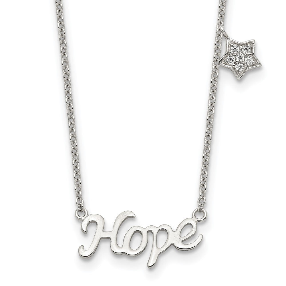 925 Sterling Silver Cubic Zirconia HOPE with Star Necklace, 18"
