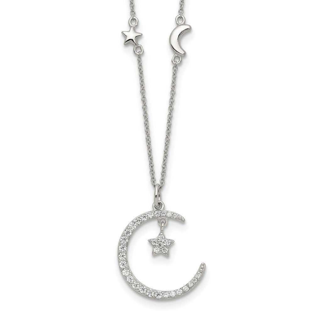 925 Sterling Silver Cubic Zirconia Moon and Star Necklace, 16"