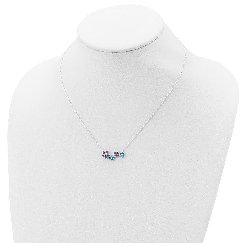 925 Sterling Silver Purple and Blue Cubic Zirconia Diamond Cut Flower Necklace, 18"