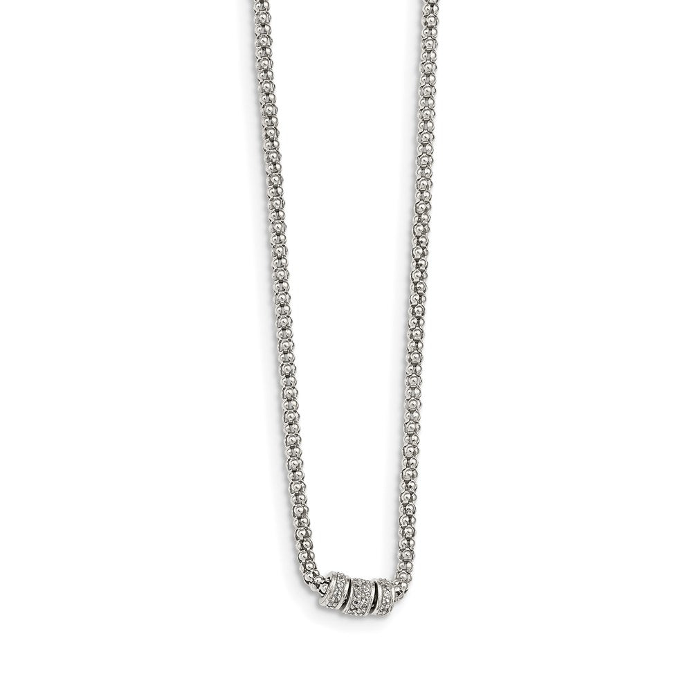 925 Sterling Silver White Blue Sapphire Bead Necklace, 17.25"