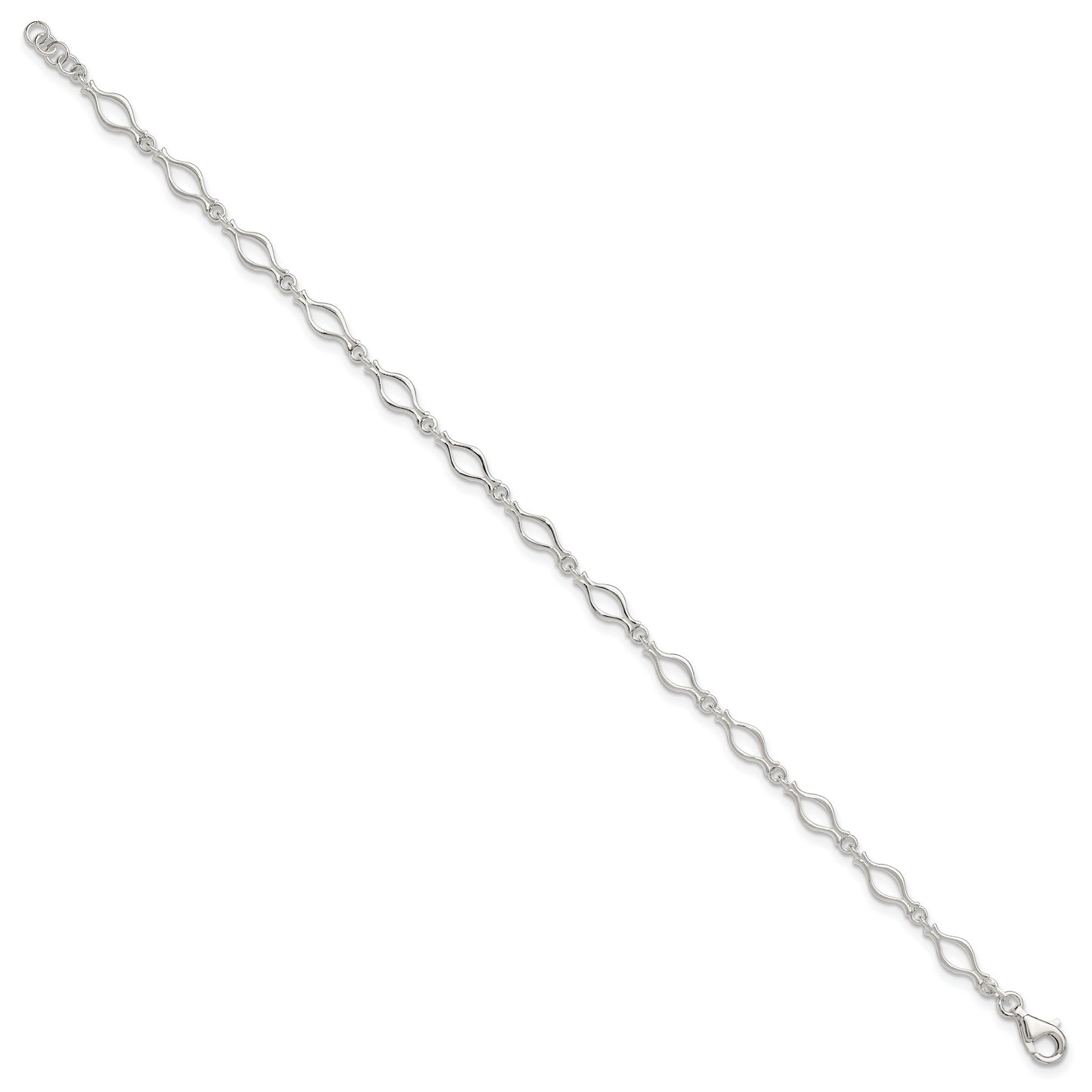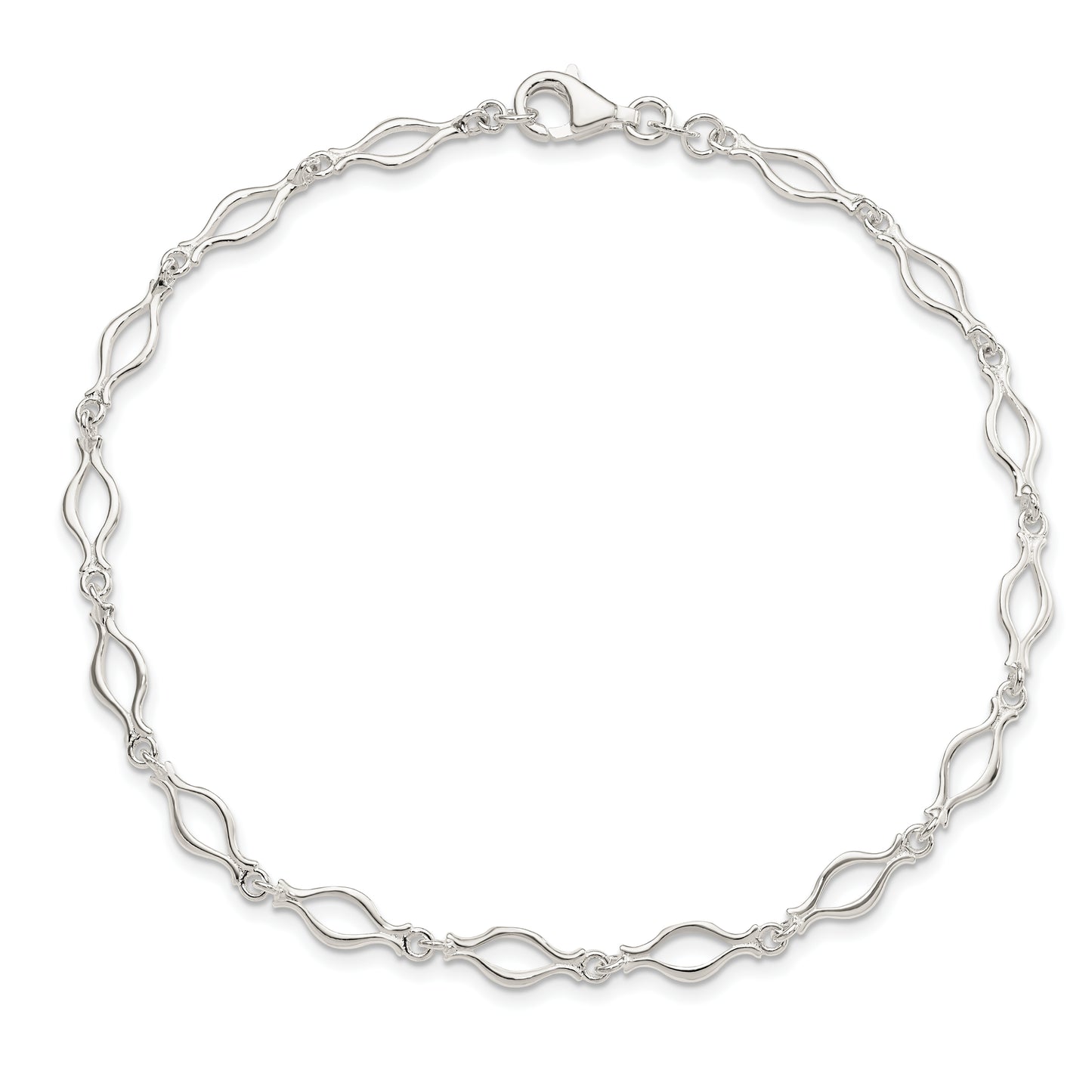 925 Sterling Silver Solid Fancy Link Anklet Chain, 9"