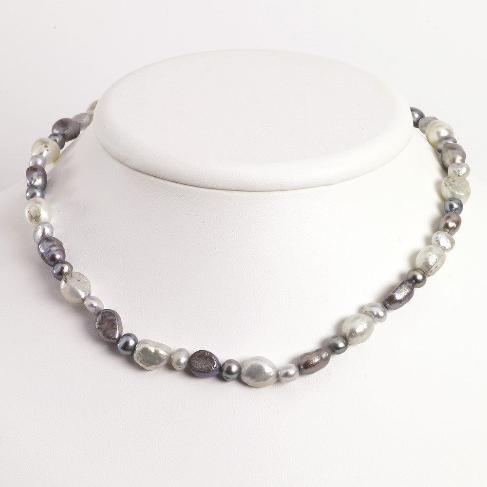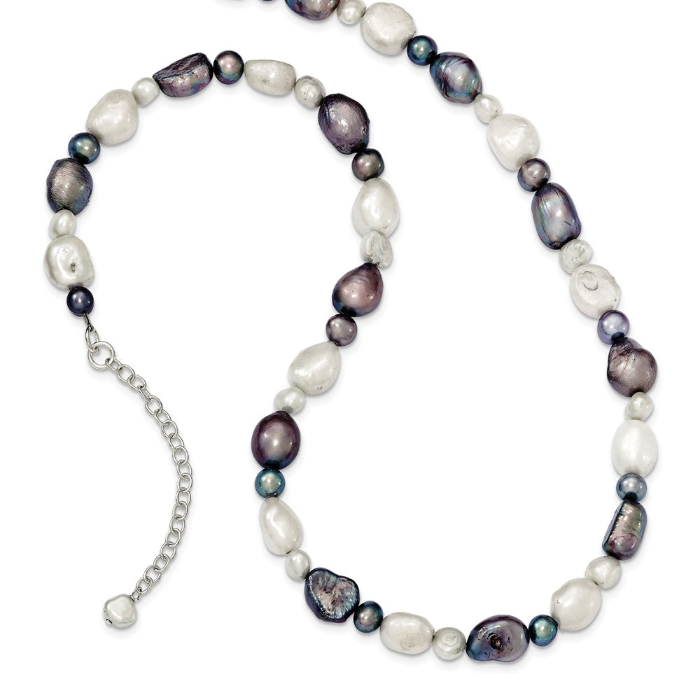 925 Sterling Silver White and Gray Freshwater Cultured Pearl Necklace, 18"